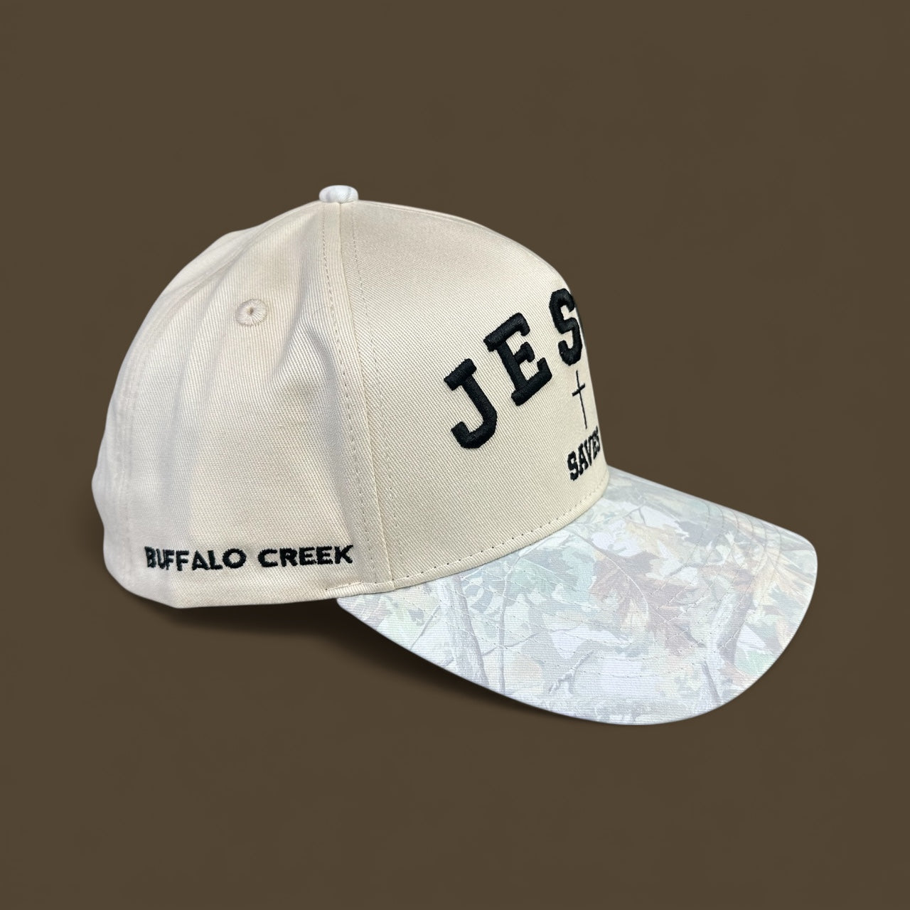 LBC custom hat featuring 3D embroidery that says “Jesus Saves”.
