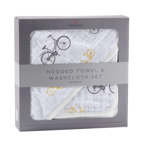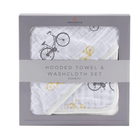 Vintage Bicycle Bamboo Hooded Towel & Washcloth Set