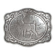 Rope edging with whitetail deer in the center. This Crumrine buckle has a vintage look. This buckle will look great with your favorite pair of jeans or dress pants. Measures 2-3/4 x 3-1/2.