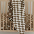 Experience the best of both worlds with this Giddy Up & Dutton Checkered print. Featuring a checkered brown & white side and a horseshoe design on the other, this quilt is perfect for your little one's nursery. Its soft muslin material provides comfort and warmth, making it a must-have for any baby. Order now!