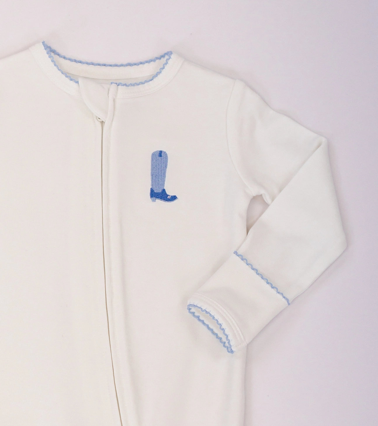 Blue Boot Pip Embroidered Zippy - 0-3m is backordered and will ship as soon as it is back in stock.