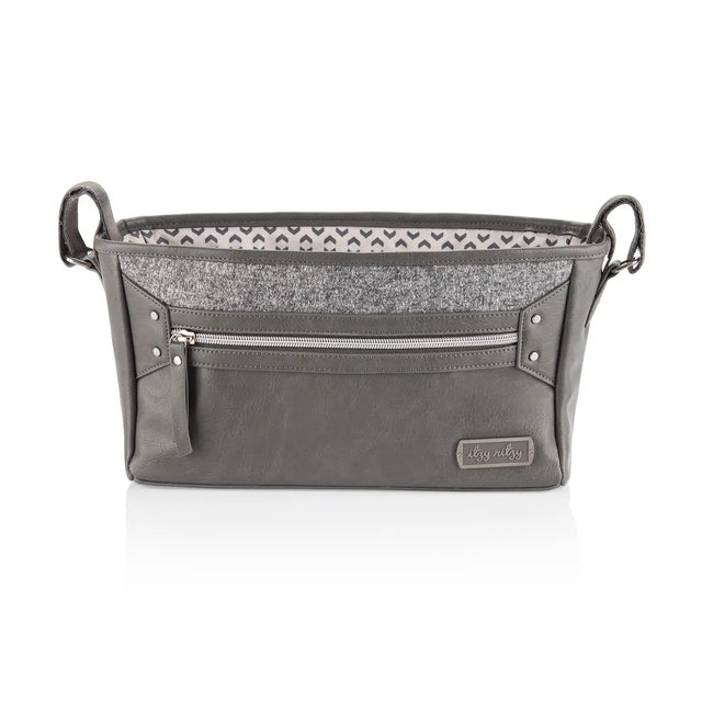 Stay organized while on the go! Itzy Ritzy’s stroller caddy is as practical as it is sleek. It features adjustable straps that can accommodate almost any size of stroller handle, and they allow the caddy to be repositioned and moved whenever you choose. The exterior of the caddy features a zippered front pocket that can store phones, keys and other parent essentials while the interior of the caddy includes two built-in pockets to hold bottles along with a roomy middle pocket. The stroller caddy easily wipes clean, making it the perfect addition to any stroller! - Adjustable straps to fit most strollers