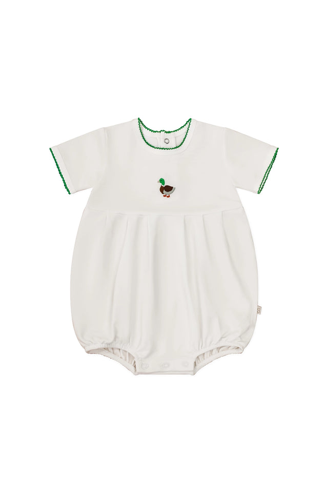 Mallard Pip Embroidered Bubble Romper - 0-3m is backordered and will ship as soon as it is back in stock.