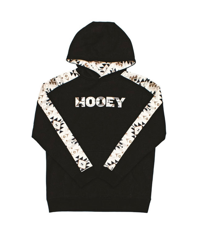 Canyon" Hooey YOUTH Black Hoody with Black / White Pattern Taping Down the Arms Kangaroo Pocket and Hood & Internal Phone Pocket